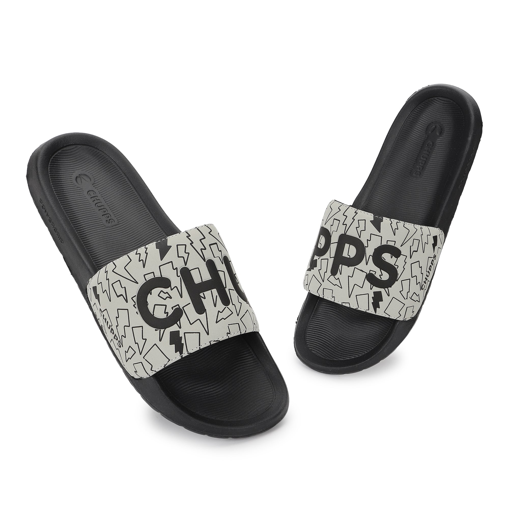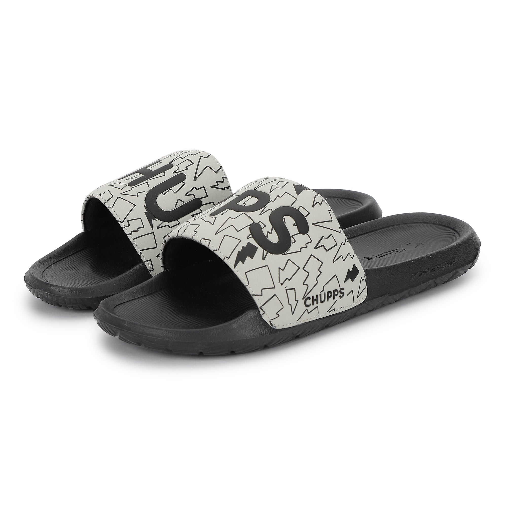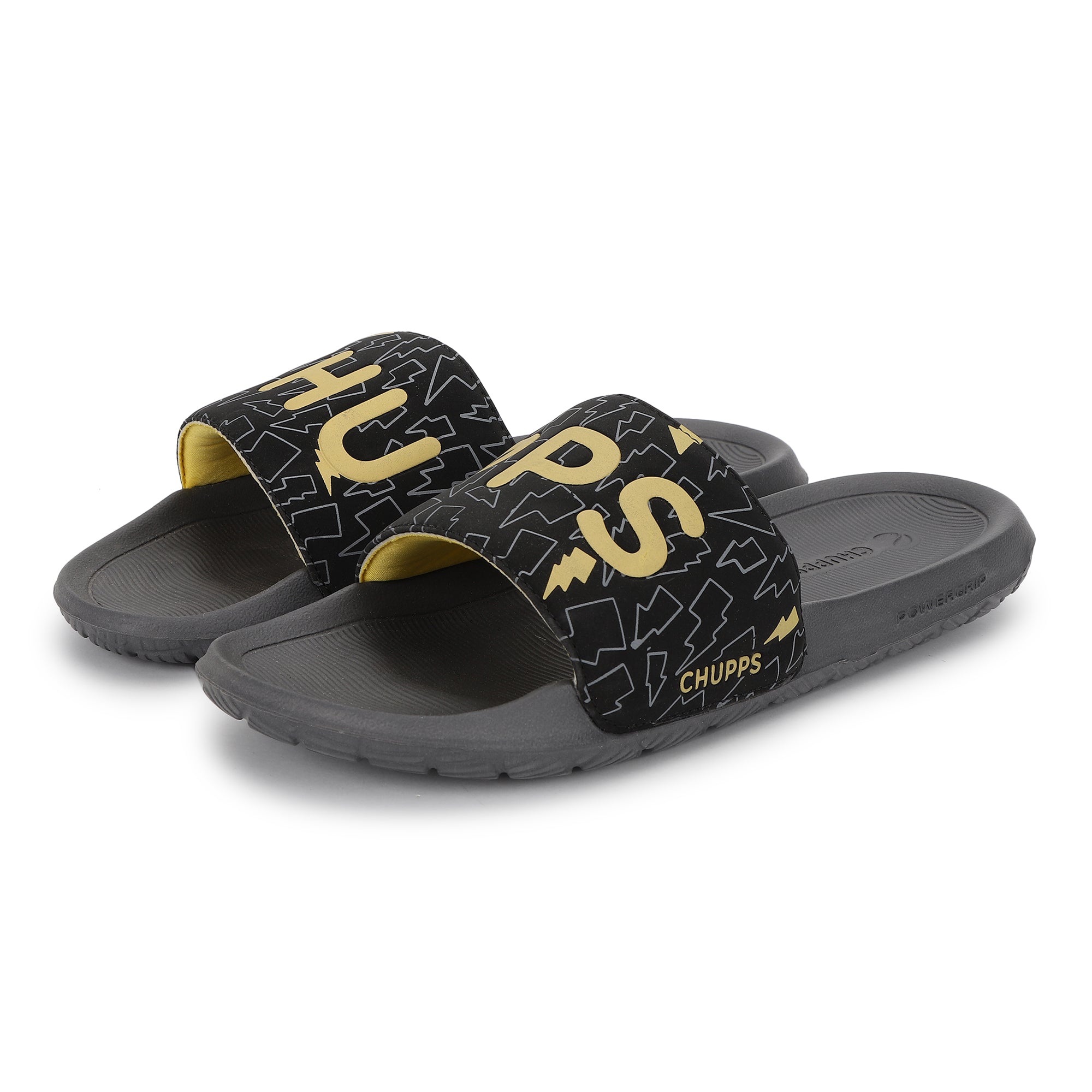 Bolt Biodegradable Black & Grey Sliders- Men