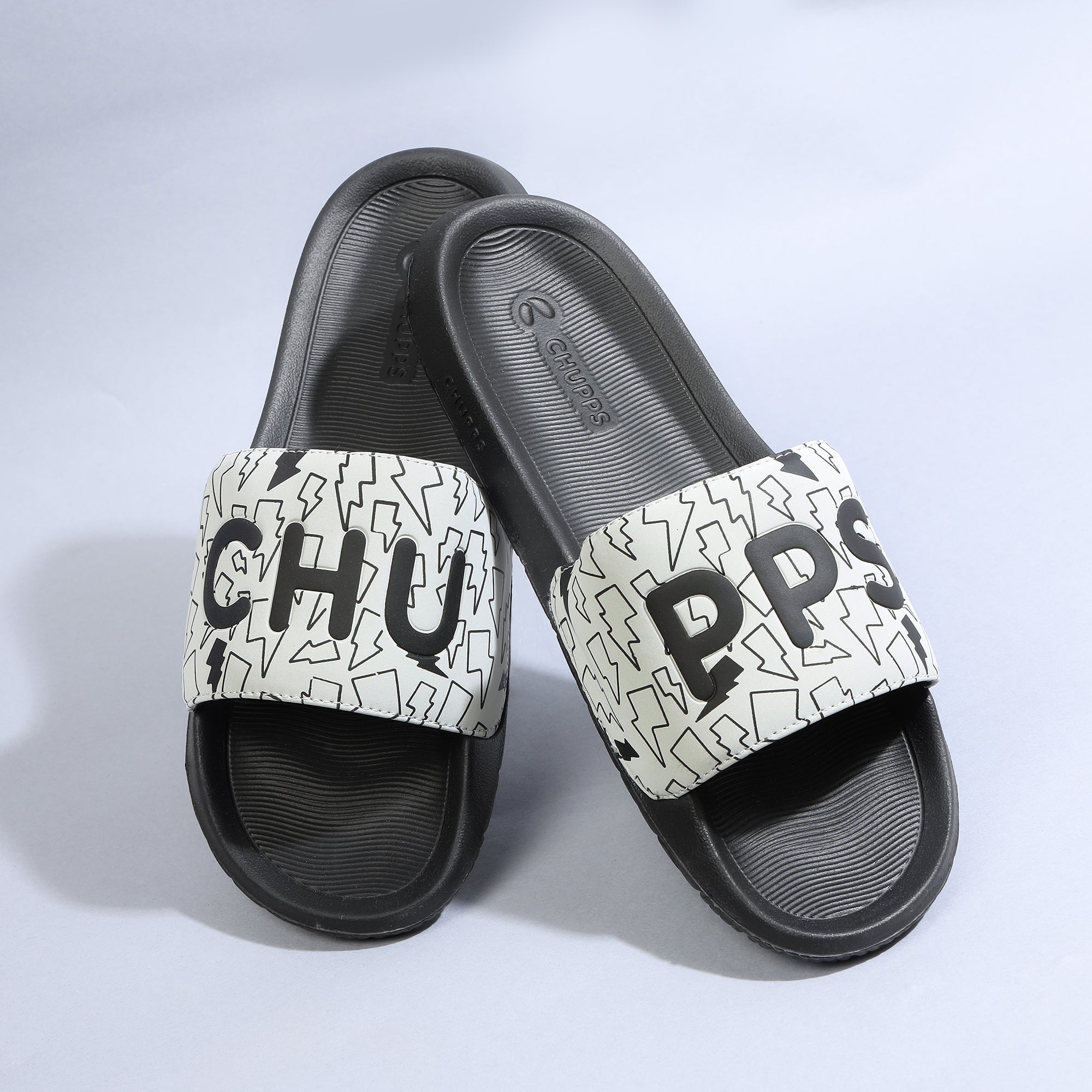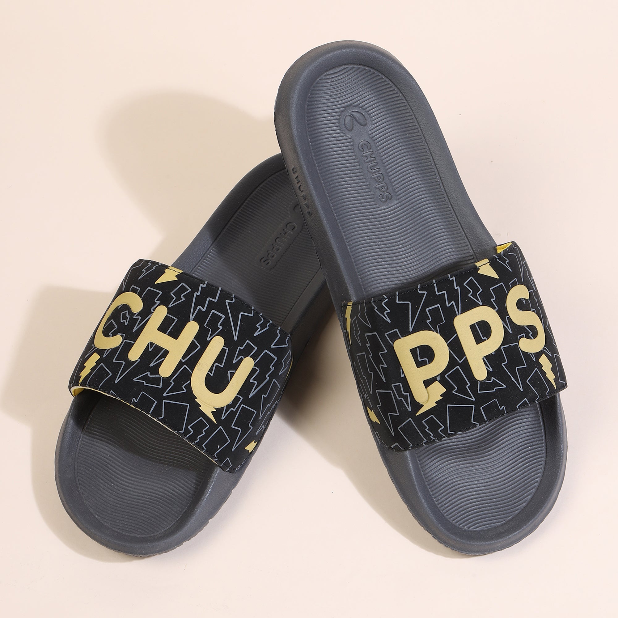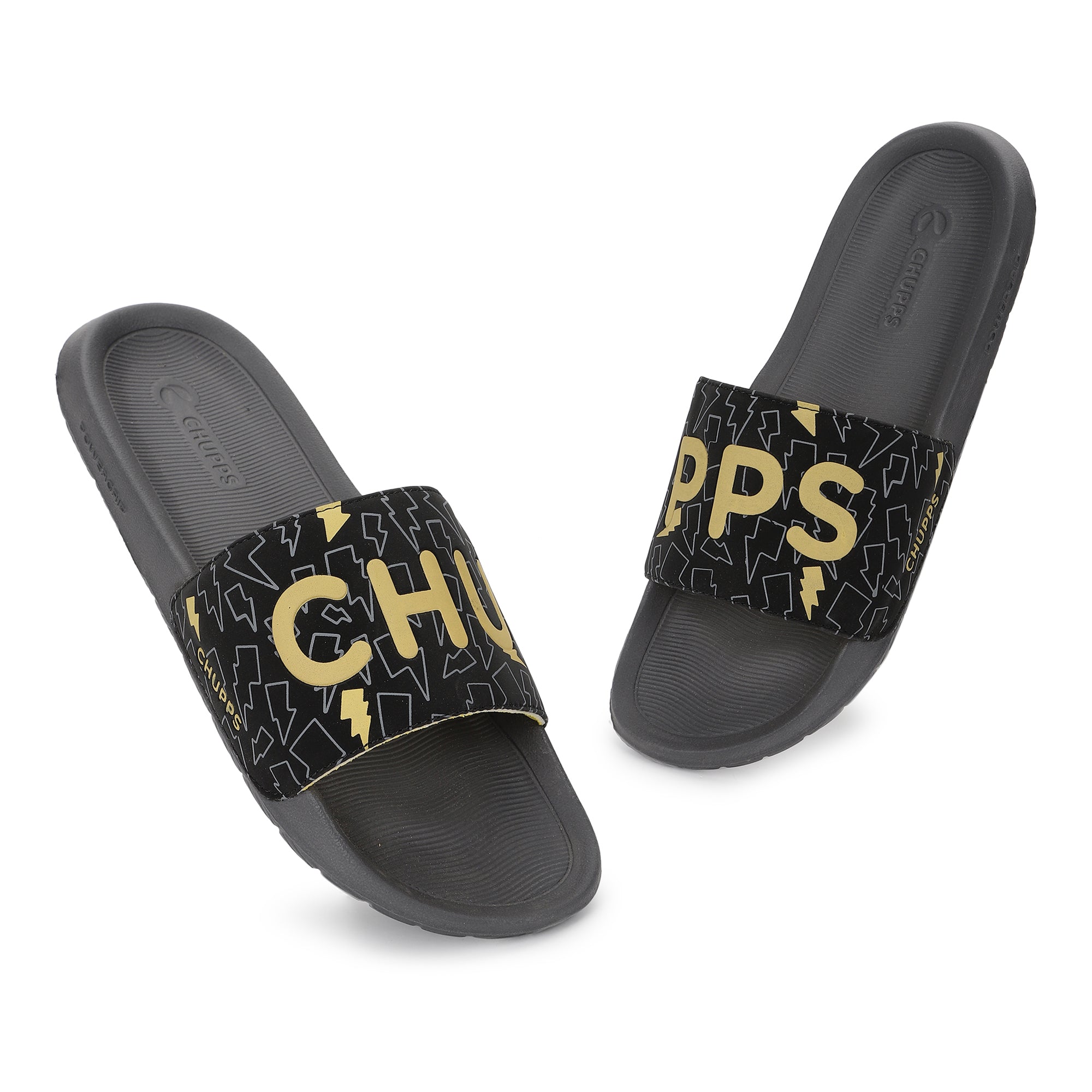 Bolt Biodegradable Black & Grey Sliders- Men