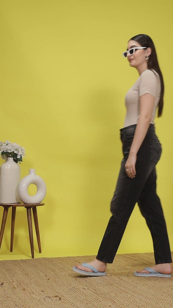 These sky blue flip-flops for women combine clean design with all-day comfort. The soft pastel tone brings a calm, fresh look to your everyday wear. With a secure V-strap and cushioned sole, they’re ready for anything.