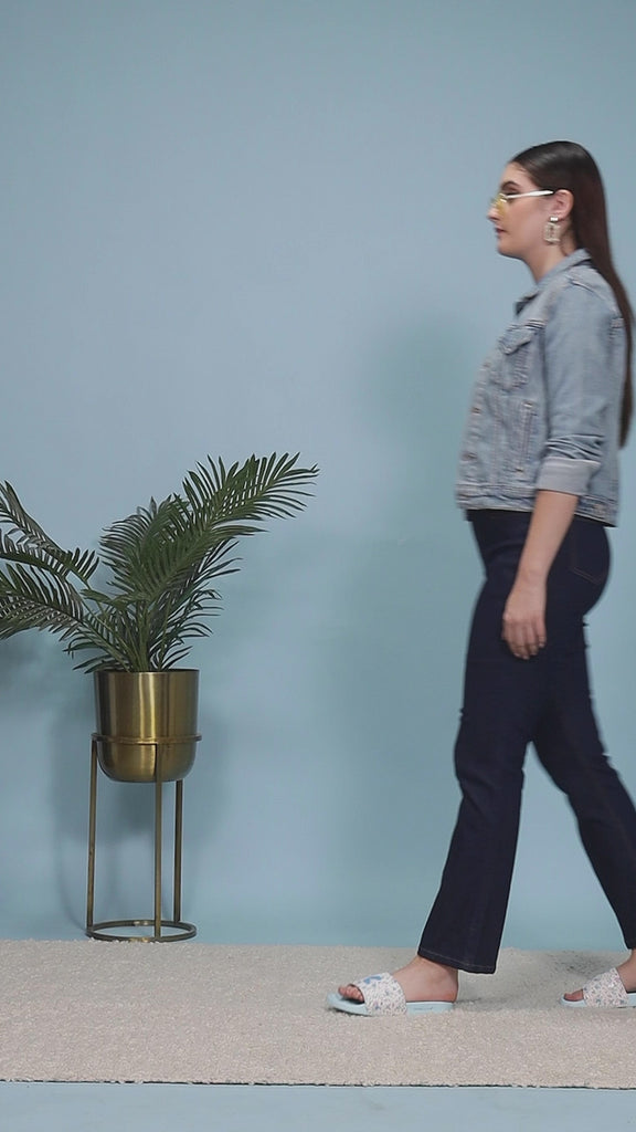 Step into the Chupps Grace White & Blue Sliders for a clean and chic vibe. The soft white base pairs with cool blue highlights for a fresh, calm look.